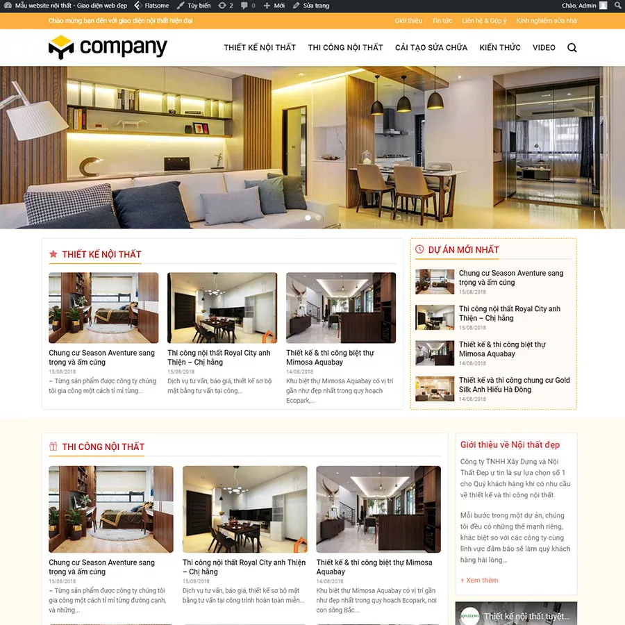 Mẫu website thiết kế thi công nội thất wordpress
